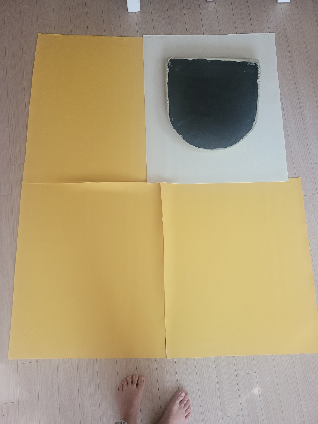 남편이 식탁 의자 4개만큼 가죽 원단을 재단한 모습입니다. 넉넉하게 잘랐어요.
